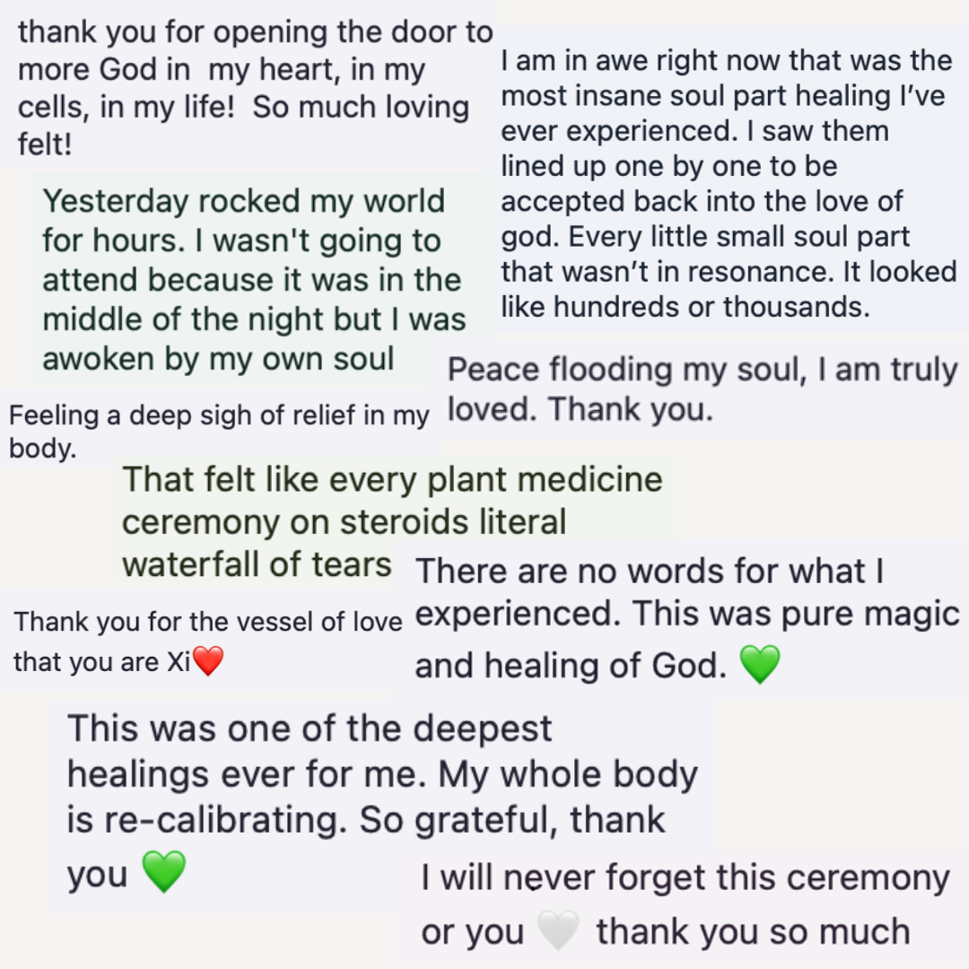 ““Xi‘s ceremonies healed my depression & anxiety and moved me into a colourful life full of spirit and connection to Life."